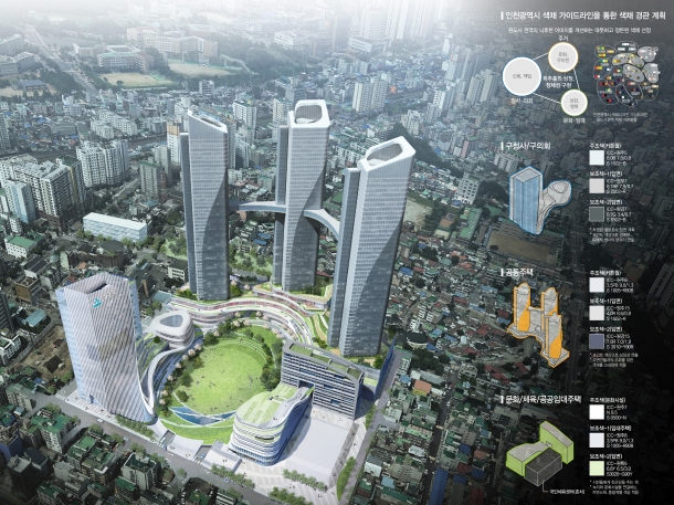 단지 내 모든 시설을 하나로 감싸고 연계하는 입체가로와 다양한 커뮤지티 공간구성으로 미추홀의 교류의 장을 계획