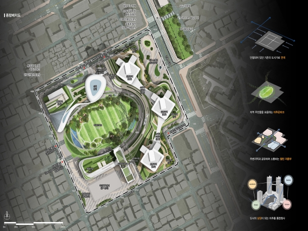 네가지의 기능이 어우러져 활력이 넘치는 자연친화형 랜드마크 탄생