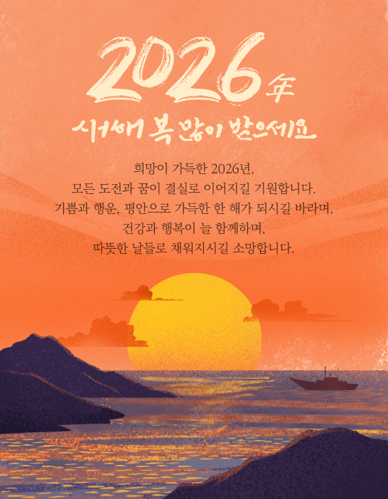 2026년 희망찬 새해를 맞이하여  건강과 행복이 가득하시길 진심으로 기원합니다.